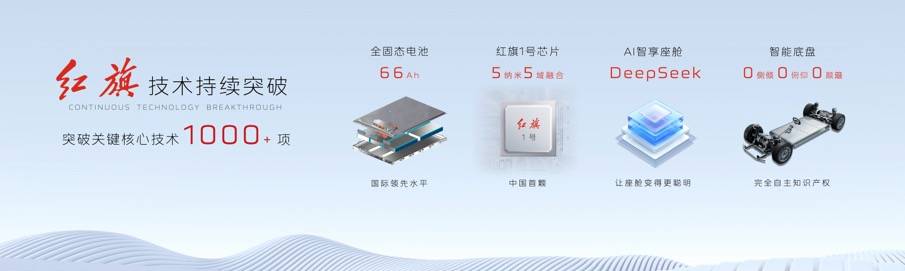 自2023年全面、全方位、全體系向智能網聯新能源汽車轉型以來,紅旗品牌緊緊圍繞國家所需、產業所急、用戶所想聚力攻堅,突破關鍵核心技術1000余項,已經完成66Ah全固態電芯試制及驗證,主要指標國際領先;推出中國首顆車規級、5納米五域融合芯片——“紅旗1號”;引入DeepSeek等大模型技術,打造智慧場景大腦;同時研發了擁有完全自主知識產權的全主動智能底盤。通過一系列技術的創新應用,紅旗品牌打造了“天工”純電、“鴻鵠”混動、“九章”智能三大技術平臺,為紅旗品牌的持續躍遷打牢了堅實技術底座。