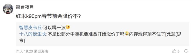 后續有用戶在評論區詢問:“18 單挖孔,19 有沒有機會見到真全面屏”,博主回復道:“折疊在測”;另一名用戶則回復道:“紅米 k90pm 春節前會降價不?”,博主回復道:“可以蹲一波”;另外一名網友則表示:“標準版沒有吧”,博主回應道:“大杯”。